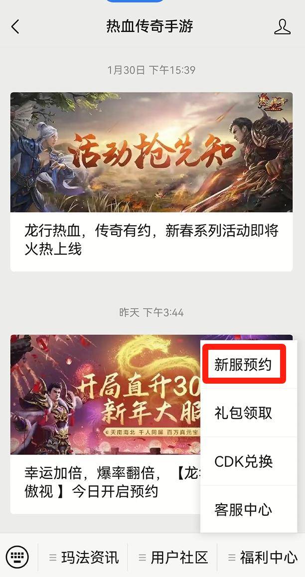 您也可以通过热血传奇手游公众号进行预约。