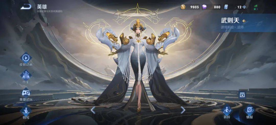 第四款武则天-神器·明辉仪,这款皮肤已经下架将近一年,当时通过游戏神器祈愿获得,技能特效和武则天其他荣耀珍藏皮肤相比差不多,人物建模还是和以往的女帝气质相符,整体性价比一般。