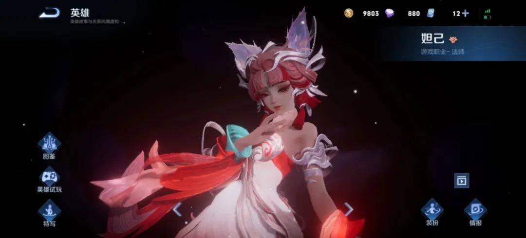 技能特效:一技能九尾之力如潮水般涌出,当云雾般的狐尾卷席而过,紫色光晕出现,力量化作繁星四散。二技能九尾之力环绕全身,纯净内丹释出,狐魂缠绕目标。三技能凝聚九尾之力,狐尾卷动舒展,九尾风华绽放于目标。