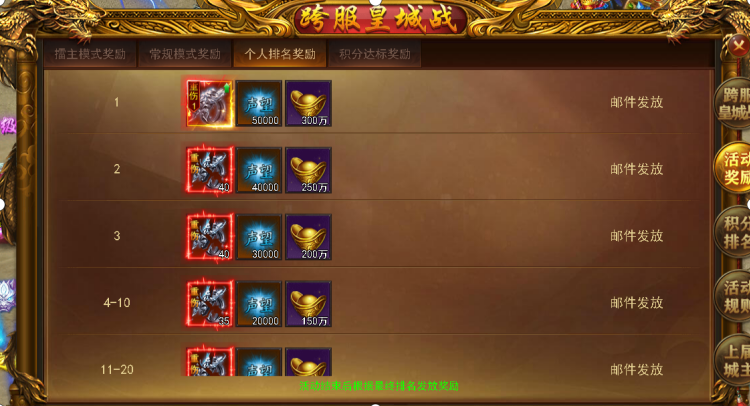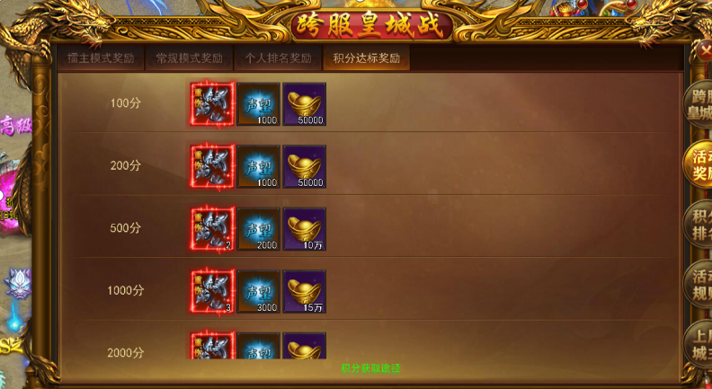 4.活动期间,个人积分达到指定要求,即可领取对应的积分达标奖励。活动结束之后,根据玩家个人排名发放对应名次的奖励。
