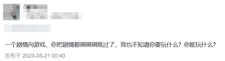 而担忧的反对方玩家,属于会完整阅读剧情的“剧情党”,“对话跳过”会不会误伤到他们的游戏体验呢?