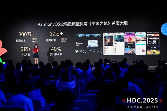 国产黑马刷宝爽游《英勇之地》商务负责人在本次分论坛分享了鸿蒙全场景游戏实践经验,《英勇之地》手游于5月首发上线鸿蒙平台,同时完成了PC版对鸿蒙电脑的全方位技术适配。借势鸿蒙生态丰富的分发场景与成熟的首发运营方案,《英勇之地》在首发阶段斩获亮眼成绩,首周流水300万+,其中鸿蒙平台占比30%,预约转化率高达40%。由此可见,鸿蒙全场景生态的流量红利,正在为游戏用户增长带来全新机会点。