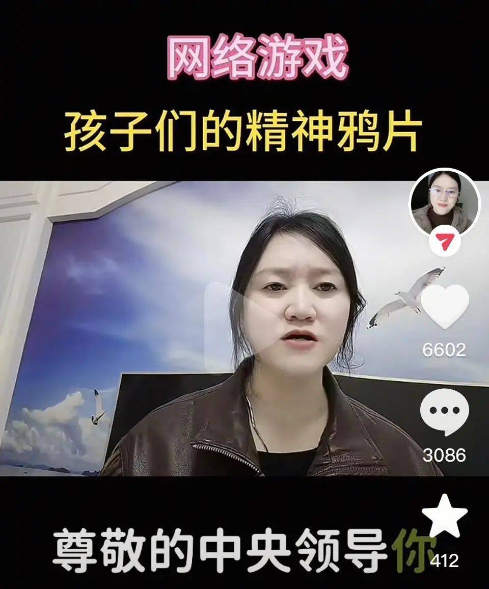 视频中刘姐对着镜头念白:尊敬的中央领导你好,我们恳请你采取措施,请企业停止运营网络游戏,无数孩子沉迷游戏而偏离正轨,任凭父母如何劝导,也无济于事。唯有国家层面出手,全面禁止网络游戏,拯救中国下一代。各位家长,你是否也支持这一倡议?