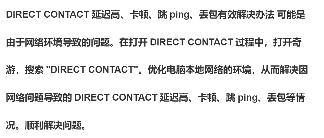 DIRECTCONTACT 延迟高卡顿 跳ping 丢包有效解决办法的解决方法