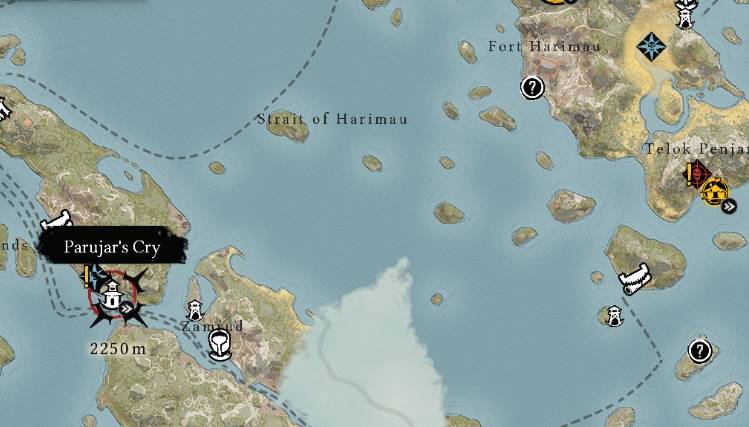 拿到第一个线索后,你将前往东印度的帕鲁加尔呐喊哨所。这个哨所位于特洛克·彭贾拉以西的哈里毛海峡和彭布鲁群岛之间的一个通道中。在那里,你将有机会购买到一些重要的道具,如长枪IV蓝图和拆解站。此外,还有一个海盗篝火可以为你提供免费的提升。在帕鲁加尔呐喊哨所停留一段时间,你将触发调查的进展并获得下一个线索。
