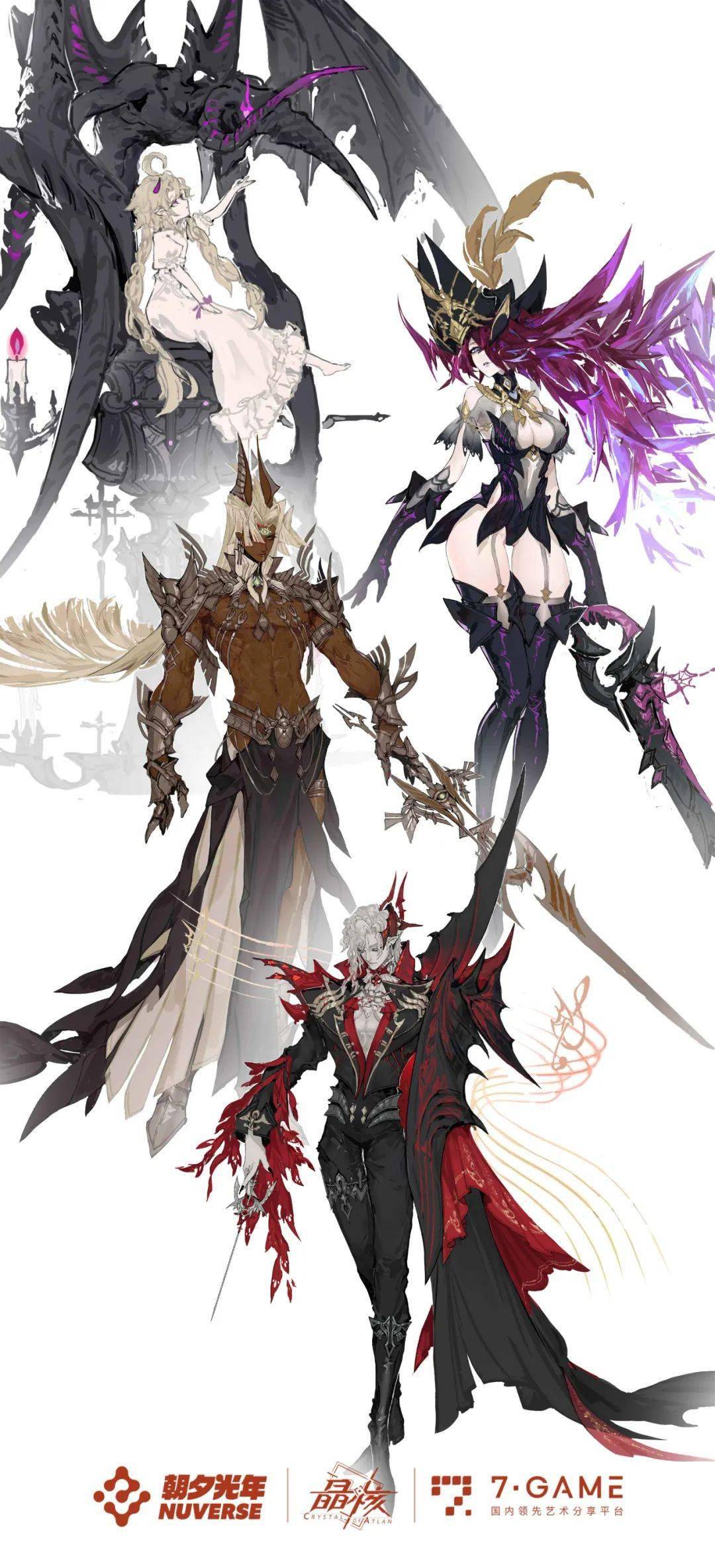 蚂蚁八手王:女性角色很好的使用了菱形与三角形的设计,让角色充满了视觉上的侵略性。男性角色的野性感与儒雅感还可以多研究下~