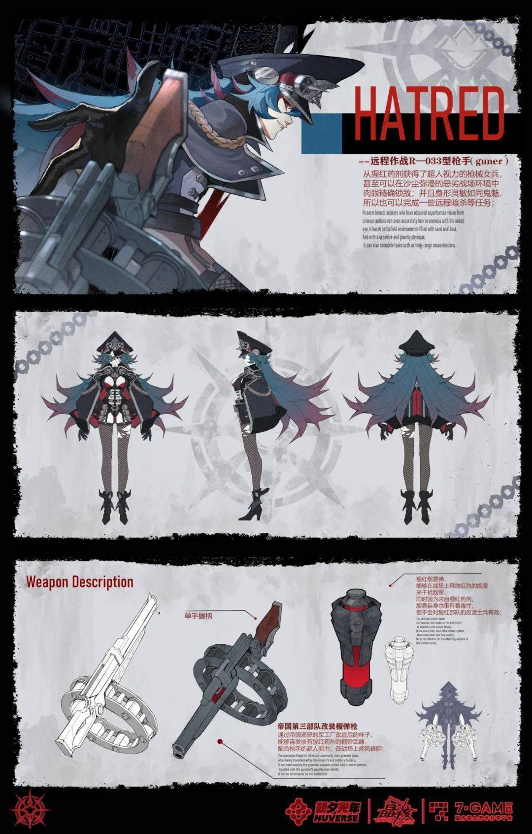 武啦啦:女枪武器是亮点!身体部分是有点碎了,手机游戏角色设计是比较忌讳身上有特别碎或均等的切割,这个绘画风格我个人是很喜欢的!