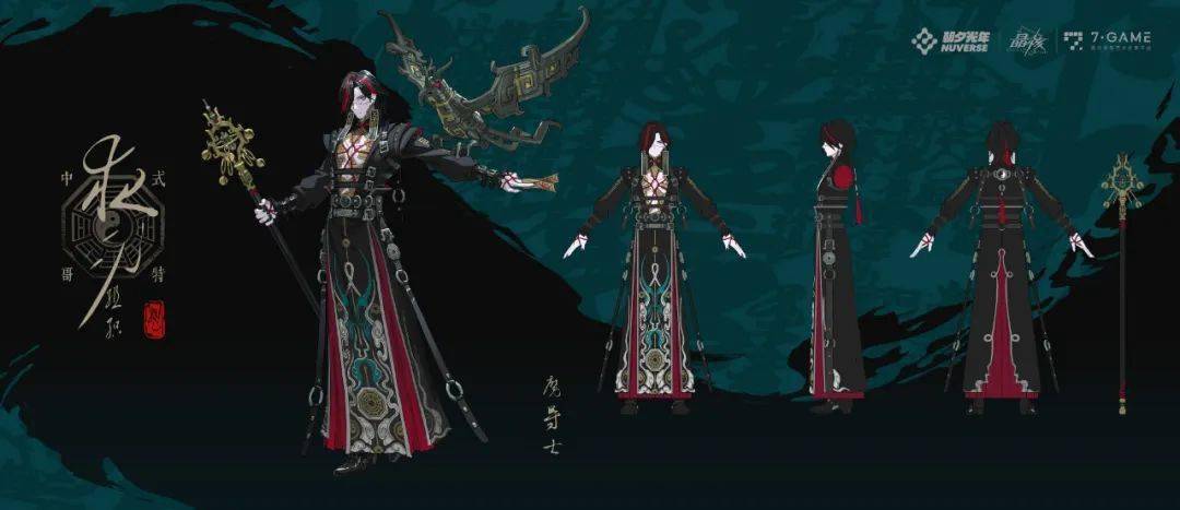 武啦啦:这组是我个人非常喜欢的一组,强烈的中国玄幻和现代元素结合得非常出彩的一组,设计上其实是有点小心机的,能看到有去贴最近很火的道诡异仙的既视感,这其实非常好!好的设计其实就是应该让人一眼有既视感认同感,和一定高度的理解度,这就是我们经常说的“藏梗”。我会更关注角色体现出的设计意图,而不是单单只是绘画能力很强。这套做到了!