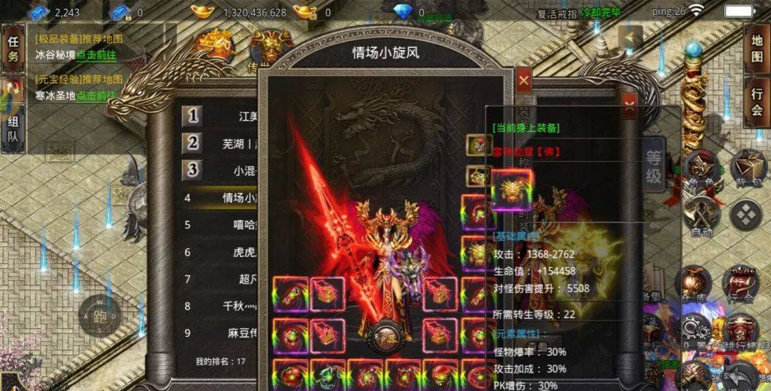 开区前三天主要升级的还是青龙白虎圣兽,解锁爆率和攻击,其次就是逆天改命和宝物升级,这个对攻击的提升也是很大的。