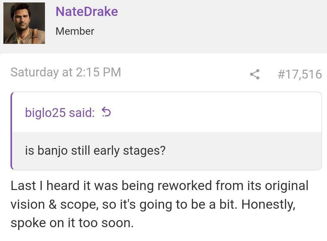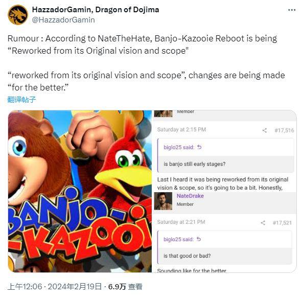 该消息人士早在去年就指出《班卓熊大冒险》的项目早在2022年就获得了批准,而他还表示该项目目前正在“根据最初的范围和愿景进行修改”,还需要一段时间才能收到更多消息。