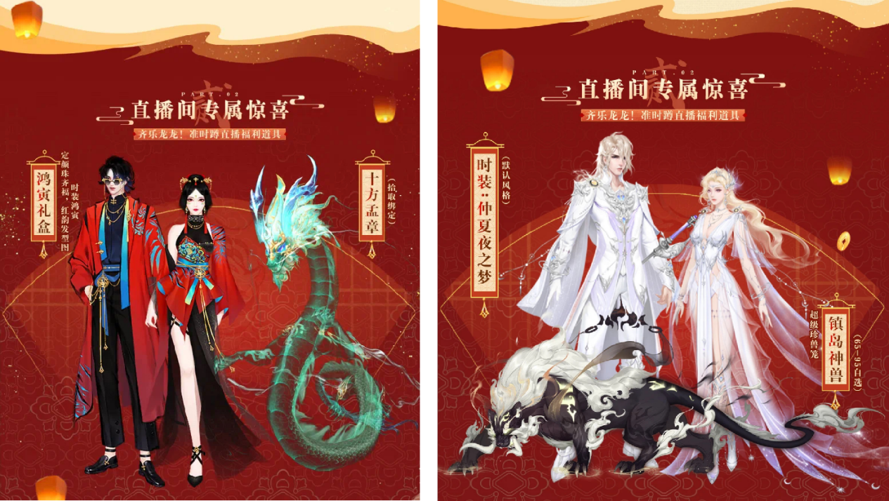 同时在这次直播当中,官方还特地准备到了龙型道具和一些有着新年好寓意的道具,价格上更是诚意满满。比如经典服的【幻武:龙卧灯】和【鸿寅礼盒】,或者怀旧服的【时装:仲夏夜之梦】和【坐骑:红熊王】等等,还有一些平时难见的珍稀限定道具,官方都在这一次的直播中大方安排了限定返场,让玩家们有机会将它们收入囊中,这种可遇而不可求的时机错过还不知道得等到何时!