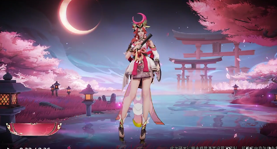 绯月行无论是配色还是皮肤的装扮,观感上都趋向于中国风,设计在了国内王者玩家的审美上。火舞的原型大家都知道,国风的设计让原先的火舞失去了一些特色,但这无关紧要,游戏就要做出大胆的改变,这样才有创新。火舞的武器还是扇子,别看扇子的面积大,但玩家的关注点都被头顶上的月亮所吸引,那种紫红色的颜色特别抓人眼球。