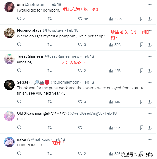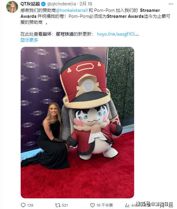 实际上,对于《崩坏:星穹铁道》成为The Streamer Awards直播大奖的赞助商这件事情,热爱星铁的海外玩家显得更加疯狂,不管是在The Streamer Awards官方推特下,还是一些海外主播与帕姆的合影下面,他们都纷纷为帕姆列车长摇旗打Call。