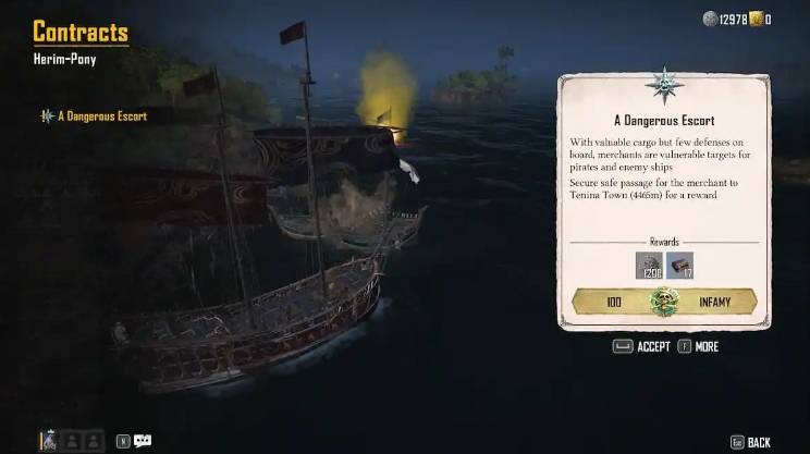这些合同不仅本身能提供一定数量的银币和可出售商品,更重要的是,在合同期间,你将有机会击败前来袭击的流氓船只。这些船只上往往载有昂贵的商品、银币袋和宝箱等丰厚战利品。因此,在完成保护合同的同时,你还能通过击败攻击者获得额外的巨额奖励。
