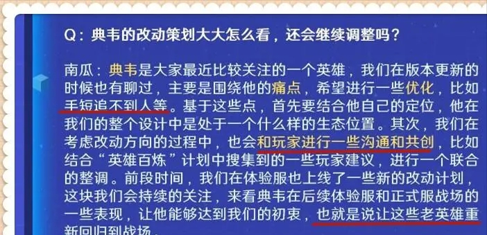 除此之外还有对于典韦的改动,这个英雄是王者荣耀中元老级的角色,操作简单,但如今在野区显得有点吃力。对此策划也有相应的改进措施,这些改动会参考玩家的建议,进行商讨之后再进行调整,目的就是让一些老英雄可以重返战场。