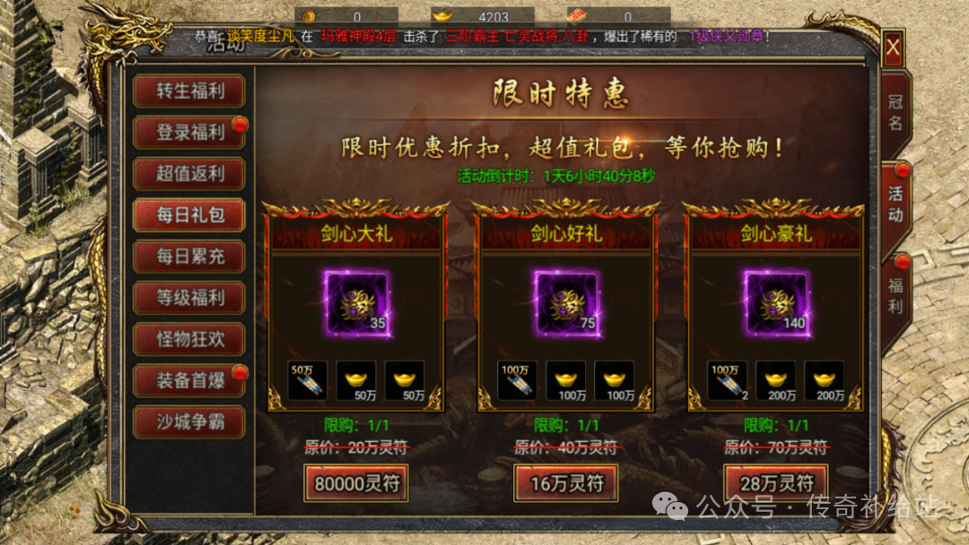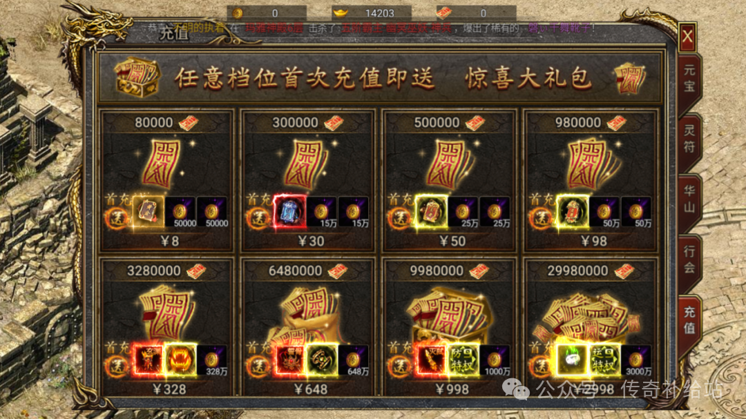 想要快速提升等级或转生,可以购买赞助,直接升至14转,战力迅速提升,刷怪更加高效。升级武魄和神器需要传奇币,可通过充值、熔炼装备或攻打禁地Boss获得。前往修罗区打Boss可以获得更好的装备提升战力。
