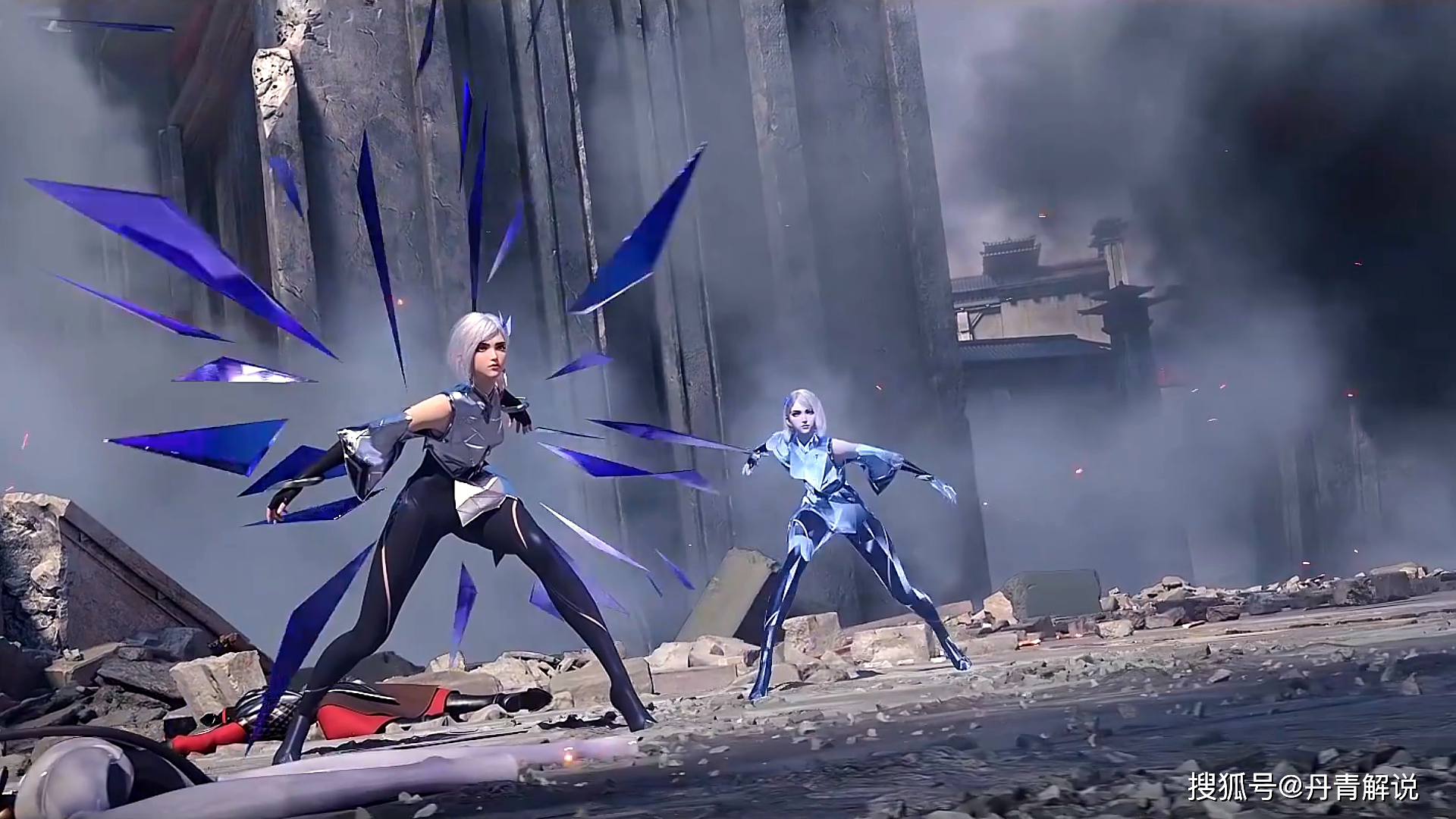 但如果你去看镜的宣传海报,却又是另一种画风!下图的镜又美又飒,画师画出了镜和镜像分离的速度感,支零破碎的镜片,刚好填补了时空裂隙的空白。