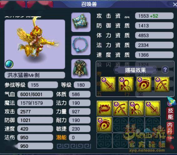 这位玩家给法宝宝赐福出了4个攻宠技能