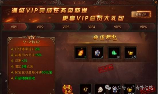 赞助是游戏中另外一个非常重要的提升战力的途径。购买不同级别的赞助,可以获得相对应的奖励,赞助等级越高,获得的奖励也越丰富。同时,在购买赞助的过程中,还可以开启更多的功能,如自动回收/拾取、自动使用等,大大提高了玩家的操作效率。赞助共分为6个等级,分别为1级勋爵赞助、2级男爵赞助、3级子爵赞助、4级伯爵赞助、5级侯爵赞助和6级公爵赞助,每个等级都有不同的战力提升效果。例如,2级男爵赞助可以提升打怪爆率+15%、元宝回收数量+25%、受怪伤害减免+800、切割伤害+1200等属性。而6级公爵赞助则可以提升打怪爆率+100%、元宝回收数量+100%、生命值+65%、受怪伤害减免+4500、切割伤害+6000等属性,其中还赠送了一些非常豪华的奖励。