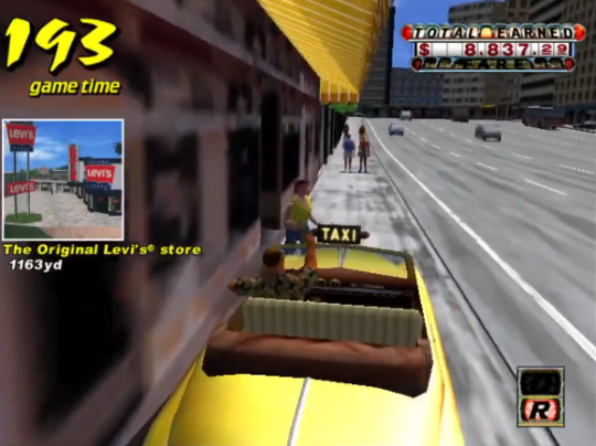 这种反常规的套路让玩家们乐此不疲,不断载着顾客前往一个又一个地点赚取酬劳。而最终这款日本人开发的美漫风格游戏走向了世界,它就是由世嘉发布于1999年的《疯狂出租车》。