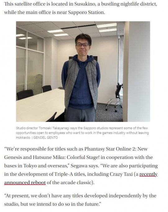 关于世嘉札幌工作室,它成立于2021年。截止到目前,还未推出过作品。因此,重启版的《疯狂出租车》很可能是该工作室的首款作品。在世嘉的设想中: