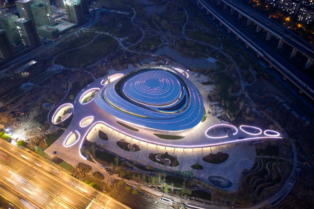 从外观上看,犹如一艘巨大的太空船,准备启航探索电竞的无限宇宙。在阳光的映照下,整个建筑闪闪发光,犹如一颗璀璨的宝石。