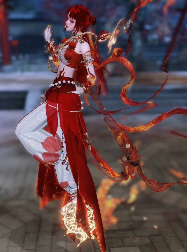 能有这样的展现效果,主要是因为《逆水寒》手游推出了一款以哪吒为原型的时装“混天焚莲”。这时装以烟红、木兰、古鼎、扶光为主色调,巧妙地融入了哪吒的多种元素,展现了一种别具一格的美学。再加上游戏的染色功能,这才有了多变的哪吒~