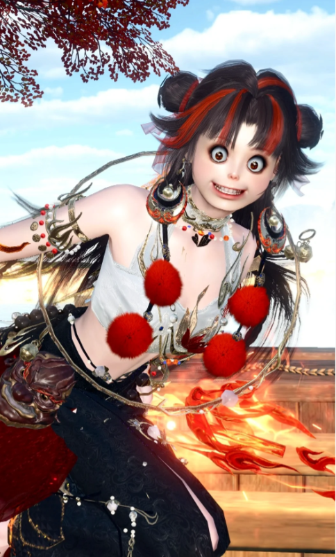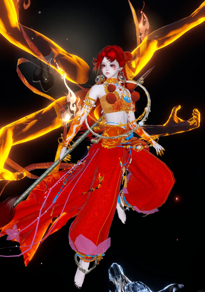 上图这位玩家,身穿一袭鲜艳如火的红衣,仿佛从烈焰中走出一般,炽热与激情并在。他的腰间系着一条混天绫,宛如一条灵动的火焰蛇。脚下的风火轮散发出炫目的光芒。他的嘴角勾起一抹倔强的微笑,仿佛在说:“我命由我不由天!”气势超强!