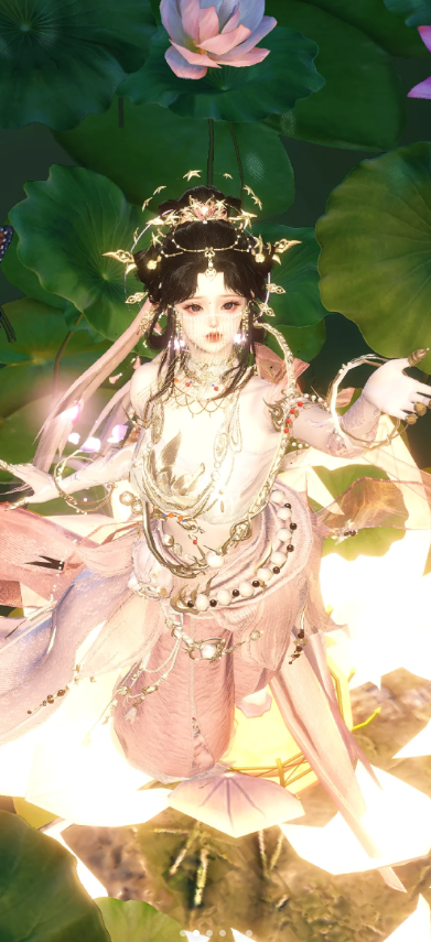 选择浅粉色的衣物与荷花的颜色相得益彰,还凸显出哪吒的柔和与温暖。当哪吒置身于荷花池中,仿佛真的化身为一位荷花妖,与荷花共舞,与池水相映,构成了一幅美丽的画卷~