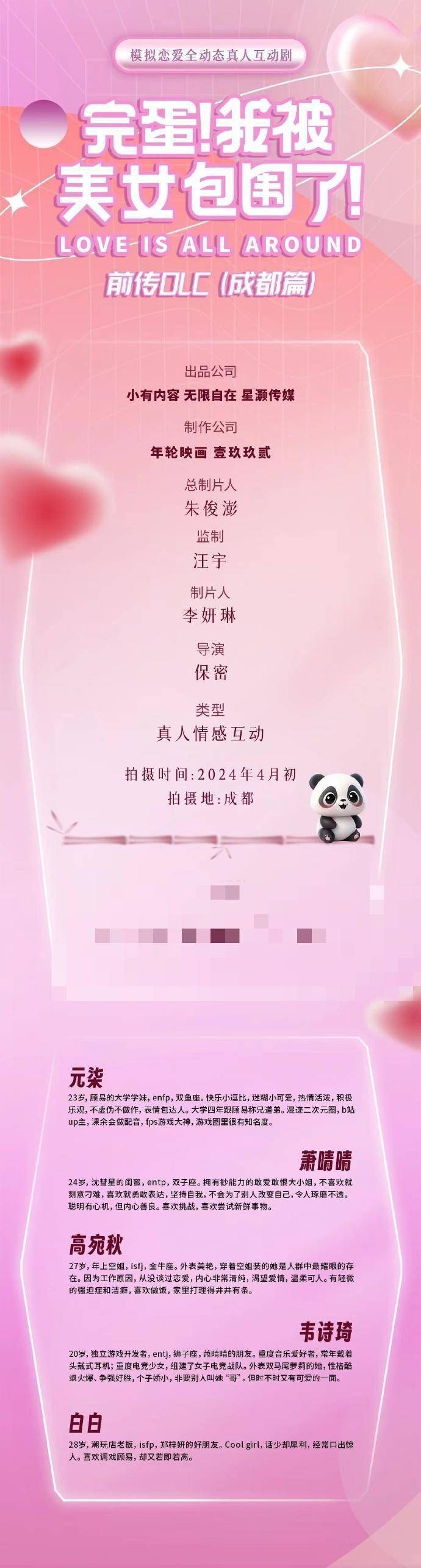 最近《完蛋!我被美女包围》DLC“房间里的心跳”发布后,新的前传DLC(成都篇)宣传海报也曝光了。新DLC中将包含5位全新女主角,预计于2024年4月初在成都开拍,具体发售时间未定。