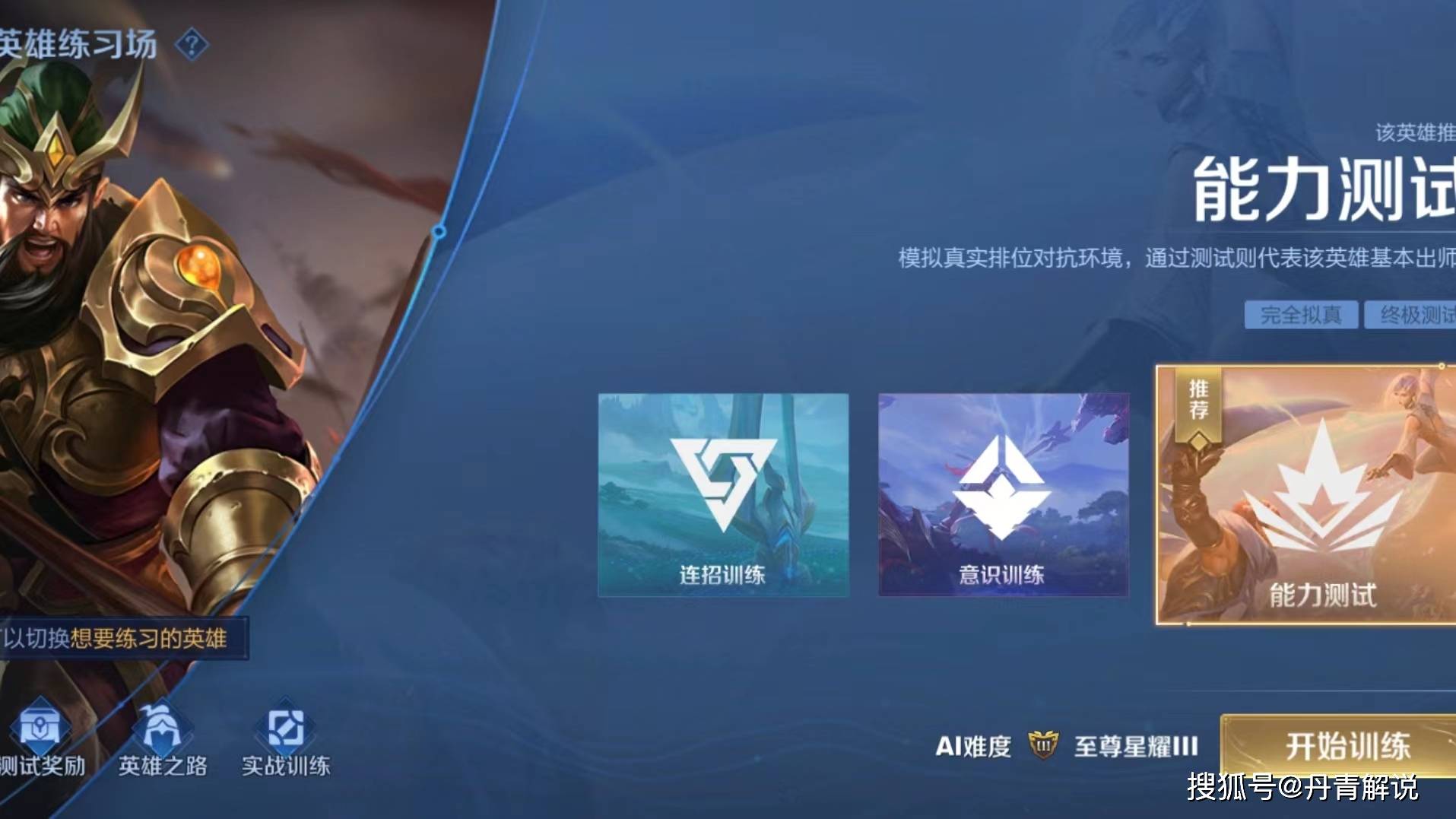 意识训练之后,就可以去做能力测试了,能力测试不可选难度,它是模拟真实的排位赛对抗环境,如果你能通过能力测试,那么该英雄基本就可以出师了。
