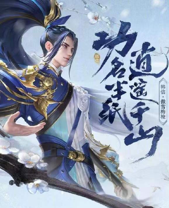 我们还可以看到,衣服的颜色主要是以蓝色和白色为主,再加上韩信的一头蓝色头发,将头发高高地吊起,看上去更是一位翩翩君子,更凸显出来了少年感。再加上韩信手中的武器,在设计的时候也加入了新的花纹和设定,所以导致韩信看上去更加地帅气了。这款皮肤整体给人的感觉就是,韩信变成了一位具有少年感的将军,并且是一身傲骨的少年,也的确贴合了傲雪梅枪这个主题。