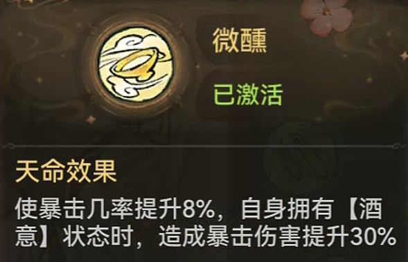 而对于李清圣来说,这个天命可以让他更轻松地触发【酒意】带来的30%爆伤。