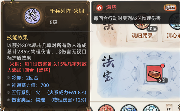 火铜这个法宝,乍看之下面板伤害不高。