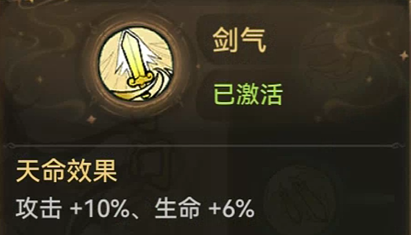 常规属性天命,这个所有剑修的加成都是一样的,总体就是提高剑修的输出和容错。