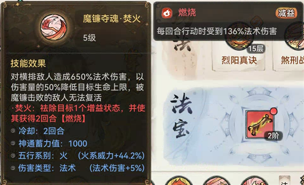 烈阳可以为敌方群体降防,还可以让队友被攻击时给李清圣叠攻击,配合最强输出功法煞刑,输出拉到极致。