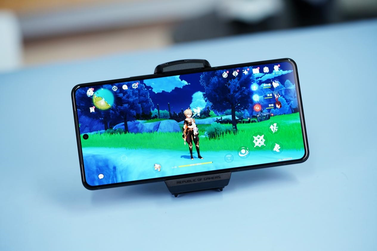 除了硬件给力之外,ROG游戏手机8还在软件层面针对游戏做了很多优化。比如,ROG游戏手机8保留了AirTrigger肩键设计。这一功能可以让玩家在游戏中的操作提升几个档次,如有玩吃鸡等FPS类游戏时,即使是新手玩家也能轻松实现四指操作。同时,该机型还加入了AI辅助功能,如在《原神》中就能开启自动拾取、跑动锁定和NPC对话自动加速等模式,手机还可以自动识别文本内容加速播放进度,缩短副本刷怪、升级时间成本。