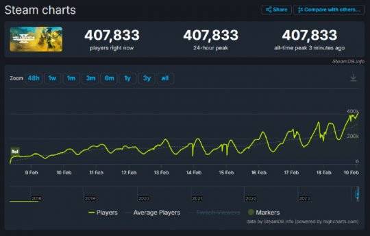 《幻兽帕鲁》排名第三,虽然当下的平均在线人数依然能够稳定在数十万,但巅峰已过,未来想要再冲一波纪录基本已经不可能了。不过对于开发商来说,能创造千万级别的销量已经是个奇迹了,接下来的持续更新并保障长期运营才是重中之重。