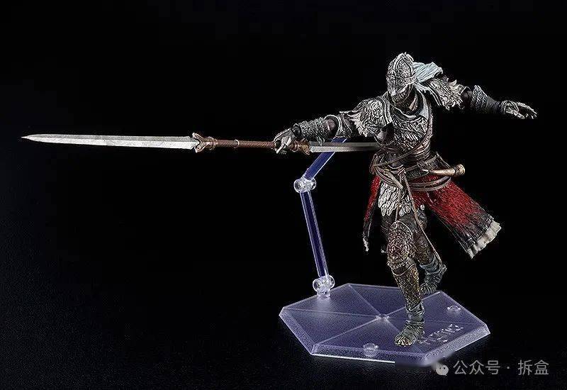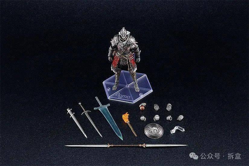 Max Factory推出的可动人偶全高16cm,配件包括变种剑、铁圆盾、暗月大剑、双刃剑、火把、露滴圣杯瓶等,非常豪华!并且可使用专用固定零件背起盾牌~