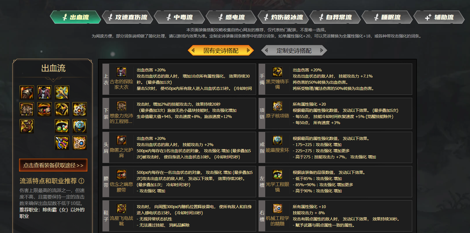 小伙伴们可以通过游戏中的成长指南查到当前职业的推荐自定义史诗流派,先确定自己要走的流派。