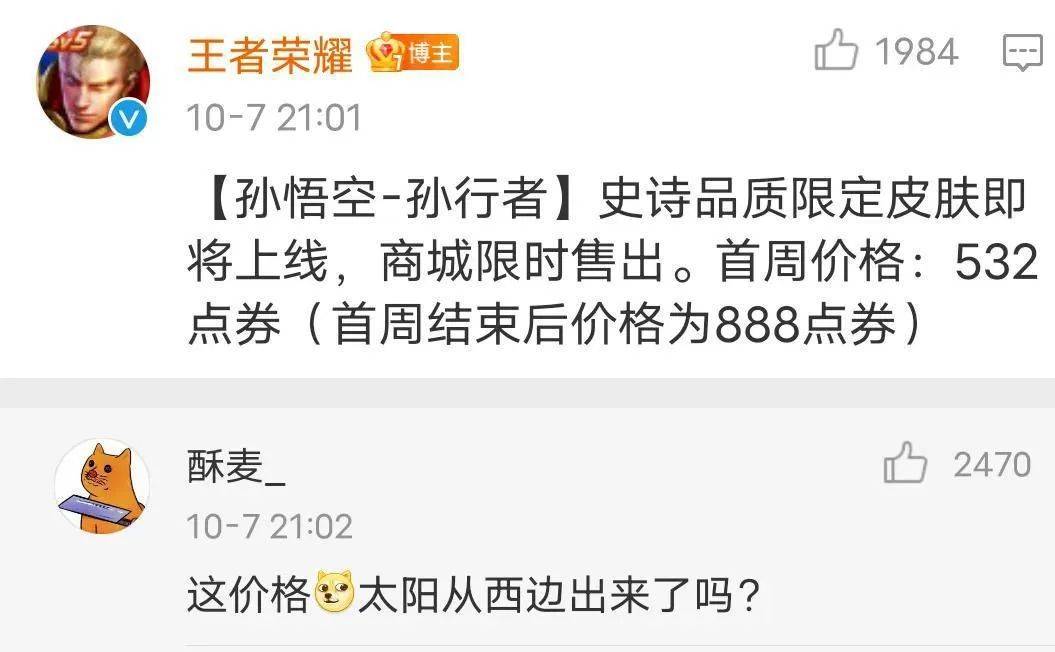 而且当时孙悟空这款皮肤他还有活动,玩家们到手价格只要532点券,比一般的史诗皮肤还要便宜200点券左右。
