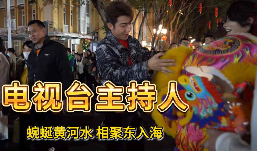 舞狮身边汇集了越来越多的人,还引起了广州电视台的好奇,电视台主持人更是对嘉明进行了采访,了解了他COS角色的背景和由来。