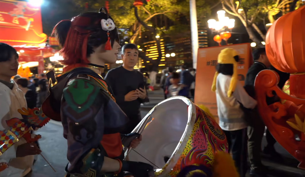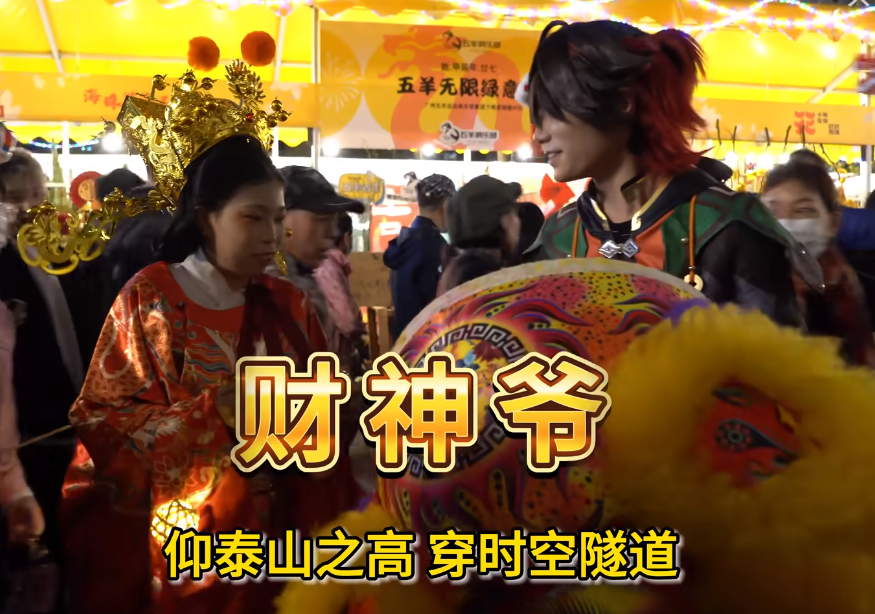 这位COS嘉明的小伙原本就是广州当地的舞狮专业人员,他舞得一手好狮。这次原神推出了嘉明这个角色后,这位喜爱原神的小伙发觉自己的机会来了,身穿嘉明COS服,拿上自己祖传的舞狮家当,来到了广东省广州市迎春花市。
