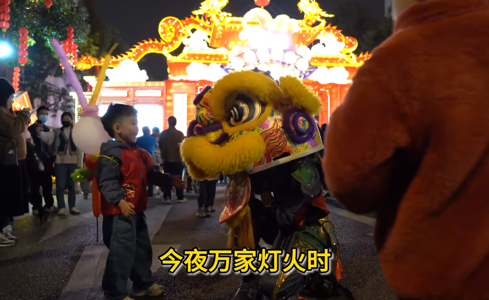 甚至连路过的小朋友、老人家都忍不住频频回头,看着与众不同,又充满中国年味的的舞狮表演,还真是把年味拉满了!