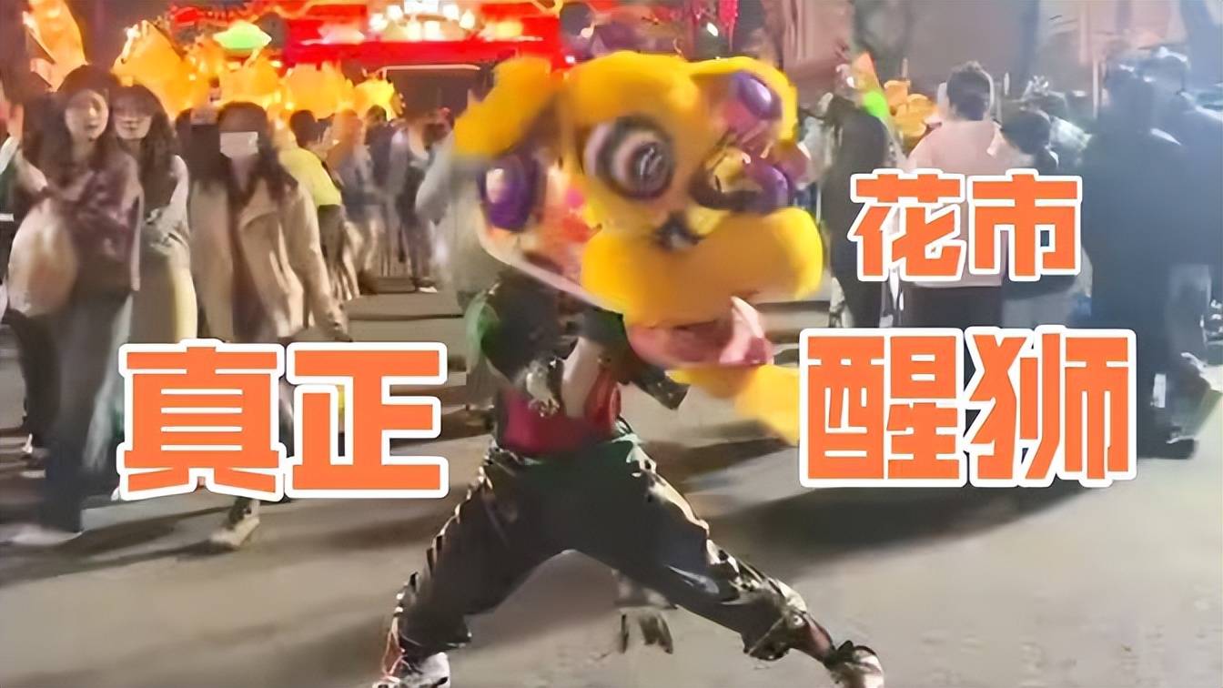 正值春节期间,广州迎春花市正在进行游街活动,现场的游客非常多,场面极为热闹。COS嘉明的小伙手持舞狮在人群中闪现,活灵活现的舞狮吸引了无数路人的关注。