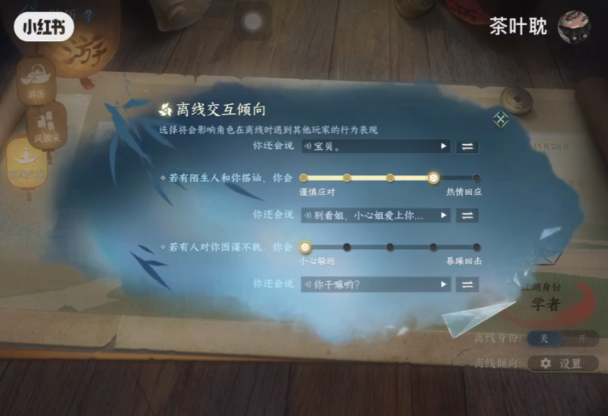 现在玩家们可以借由“角色离线倾向”功能,按照自己的意愿给自己的角色设定行为逻辑和处事风格。比如遇到朋友时会更内向高冷还是外向开朗;有陌生人跟自己搭讪时,是会谨慎应对还是热情回应;如果有人对自己图谋不轨,是会小心躲避还是暴躁回击?