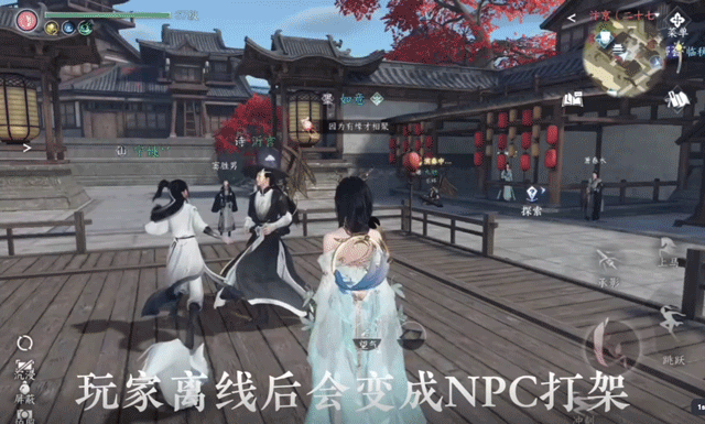 比如玩家的角色可以在酒楼当一个跑堂的伙计、在街头乞讨或者沿街卖艺、去塞外牵马或者在擂台跟人切磋……几十种江湖身份,不一而足。整个过程完全是由人工智能来“接管”的,玩家们只有在下一次登录后,才能通过离线角色的记录,查看自己的角色到底又在江湖中做了什么、跟谁产生了交集。