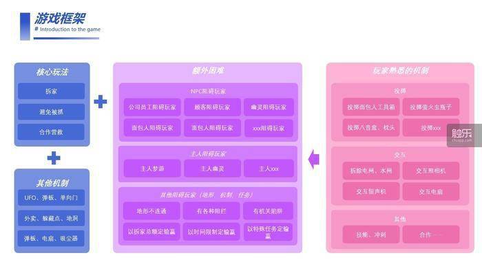 在此基础上,团队设计出了具体的玩法体验框架:3只宠物需要合作拆家,同时要避免被抓,如果被抓,队友可前来救援;宠物在拆家的过程中需要利用周围的环境交互,来与主人进行对抗。