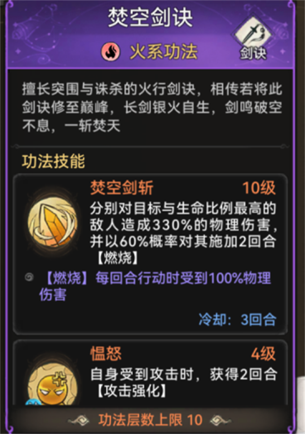 焚空:前期比较好获取的输出功法之一,焚空打PVE非常强力。