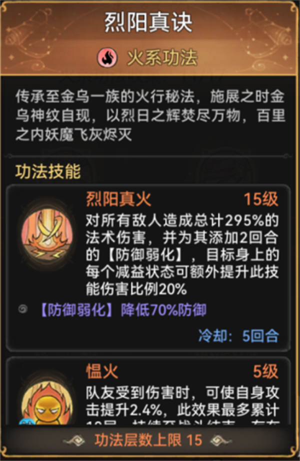烈阳:大量的AOE输出,并且还有减防效果,后续配合焚空煞形伤害更高。